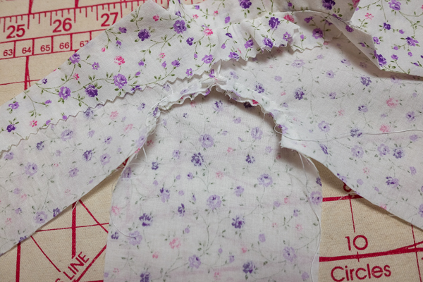 Be sure to clip the corner of the side seam, in the underarm, after you sew it. This helps to keep it from bunching up when Pru moves her arms.